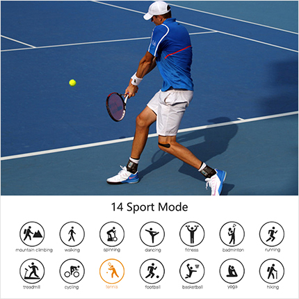 | Function | Main interface, pedometer, heart rate, blood pressure, sleep monitor, multi-sport modes, message reminder, stopwatch, find your phone, shutdown |