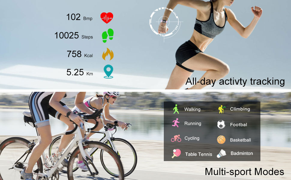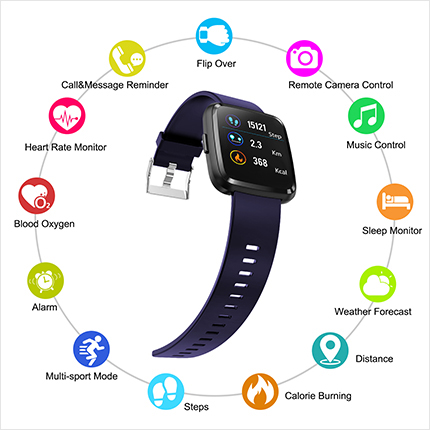 | Function | Main interface,pedometer, heart rate, blood pressure, blood oxygen, sleep monitor, multi sport modes,message reminder,stopwatch, find your phone, shutdown etc |